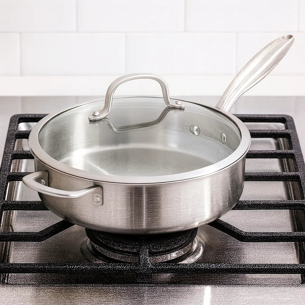 Graças à tecnologia de corpo triplo — duas camadas de aço inox envolvendo um núcleo de alumínio — o calor se espalha de forma homogênea por toda a frigideira, evitando pontos frios e garantindo cozimento uniforme. Essa performance térmica reduz o tempo de preparo, economiza energia e mantém o sabor e a suculência dos alimentos. Compatível com fogões a gás, elétricos, vitrocerâmicos e por indução.